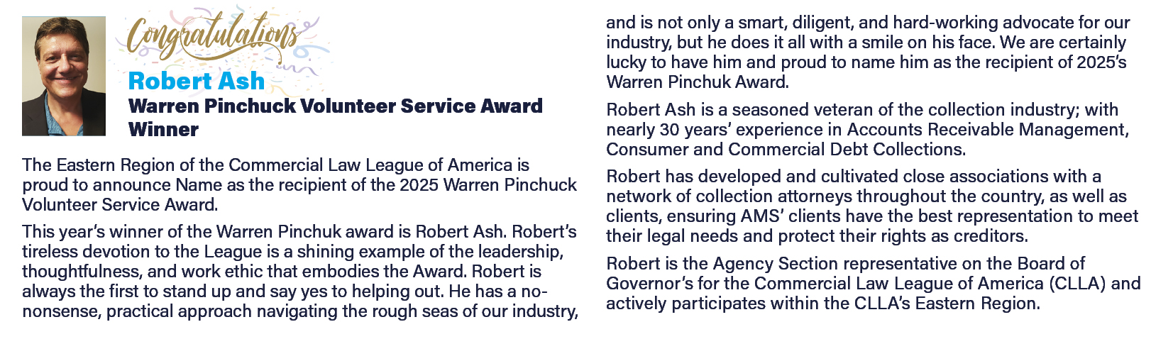 This will be an interactive discussion about the recent state debt collection laws and bills, and their impact on the business climate and compliance. Agencies, attorneys, and creditors must adapt and be prepared to navigate change with their practices and procedures. What legislative collection issues are here to stay and where is copy-cat collection legislation after the Rosenthal Act in the East?
